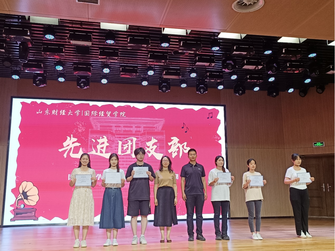 回顾结束后,崔东峰书记为跨境电商一班等团支部颁发“卓越团支部”奖项。王斐斐书记、房甄老师为2021级国际商务二班等多个团支部颁发了3044am永利集团3044noc2022-2023学年第二学期先进团支部奖项。