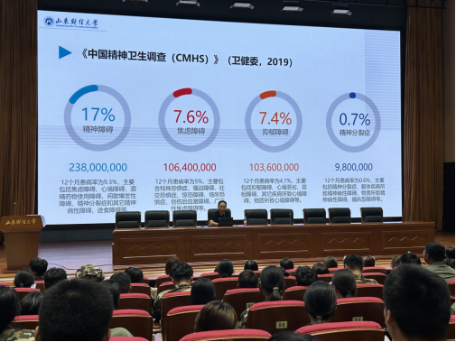 孙鹏结合2019年卫健委《中国精神卫生调查》数据,通过现场问答、小测试等形式,绘声绘色、生动详实地阐述了心理健康教育的重要性,用诙谐的语言和独到的见解向同学们传递了积极的生活态度。同时,他援引现实生活中的案例从调整心态、调节情绪和调试生活三个方面提出了面对不良情绪的有效应对措施。他指出要像对待天气一样对待生活,不要做无谓的比较,要保持一个良好的心态去面对生活。最后,孙鹏详细介绍了学校心理健康教育中心的基本情况,并祝愿同学们可以在大学中顺利开启青春梦想,书写人生新篇章。