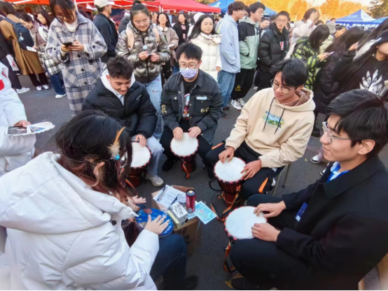 在经过一个多小时的场地搭建与准备后,下午两点活动正式开始。作为丝绸之路的东方起点,中国展区以投壶、射箭、诗词游戏等蕴含中国传统文化的活动为主。在“一带一路”国家展区,东非的非洲鼓、俄罗斯的紫皮糖、中亚的民族服饰、南亚琳琅满目的展品、此起彼伏的鼓掌声……。生动趣味的活动形式吸引了全校师生的关注与参与,更有来自俄罗斯的职工同学亲身体验参与游戏。