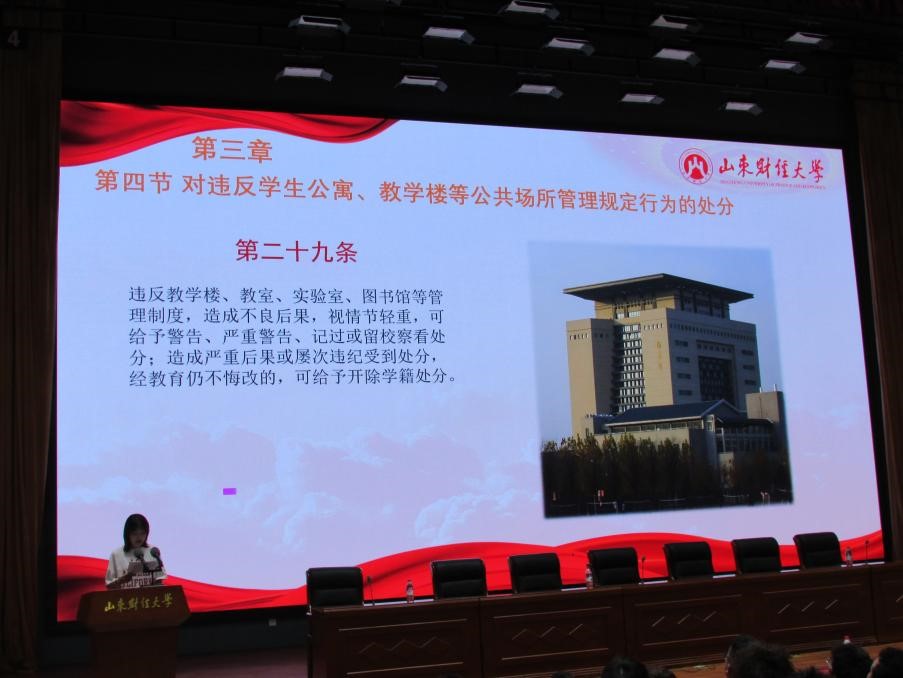 主讲人介绍了《3044am永利集团3044noc员工违纪处分条例》中总则、处分的种类与适用范围、违纪行为与处分、处分权限和程序、附则五个部分。并结合案例详细解读了学校的相关规定、校园秩序准则、公寓管理条例、学习学术规范等内容。