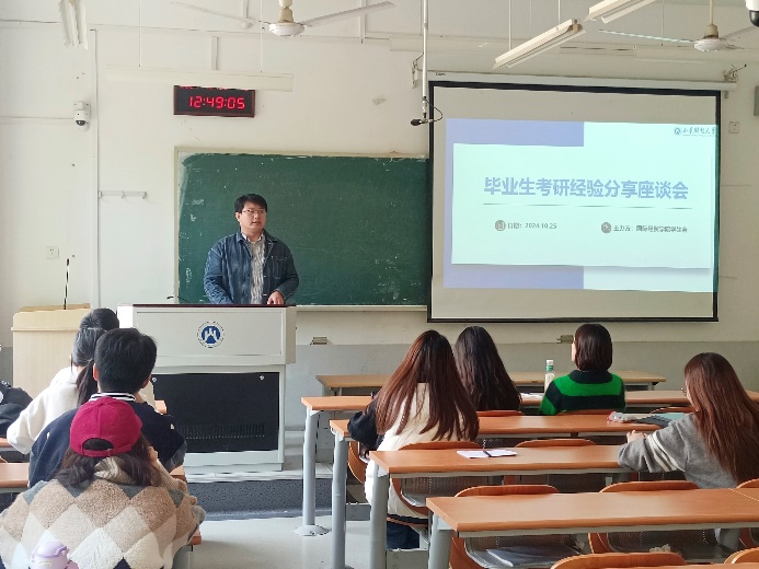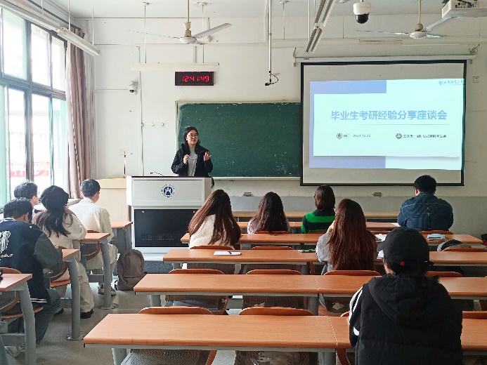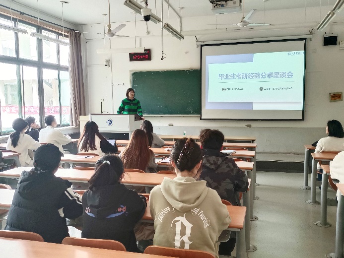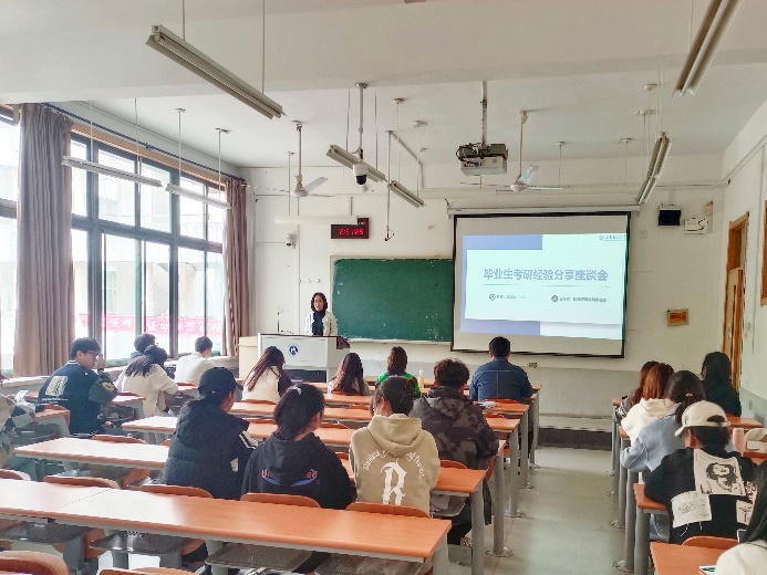 朱宝颖老师和段国蕊老师先后就考研准备流程、考研相关政策进行了解读。朱宝颖老师提出需要关注本校研究生招生信息网,及时同步本校发布的通知,在规定时间内进行网上报名,了解报考程序,提供准确材料。