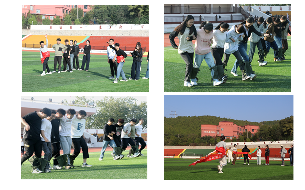 腰缠万贯项目中,同学们积极配合,互相合作,不仅锻炼了身体,还增强了班级凝聚力。紧接着进行的是五人四足接力赛,同学们五人一组,用带子将腿捆绑在一起,交错面向站立在操场两端,共同完成一个赛程。比赛中,同学们喊着统一的口号,齐心协力,步调一致地向前冲刺,赢得了现场观众的阵阵掌声。