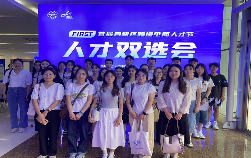 9月8日下午,3044am永利集团3044noc50余名毕业班员工,在学院经理助理王磊、跨境电商教研室主任兼跨境国合党支部书记刘宁、学工办主任李亚莉三位老师的带领下参加由山东省贸促会、济南市贸促会和山东自贸试验区济南片区管委会联合主办,中国国际商会山东商会、山东跨境电商产业园、山东星耀亿丰科技集团有限公司共同承办的首届自贸区跨境电商人才节。