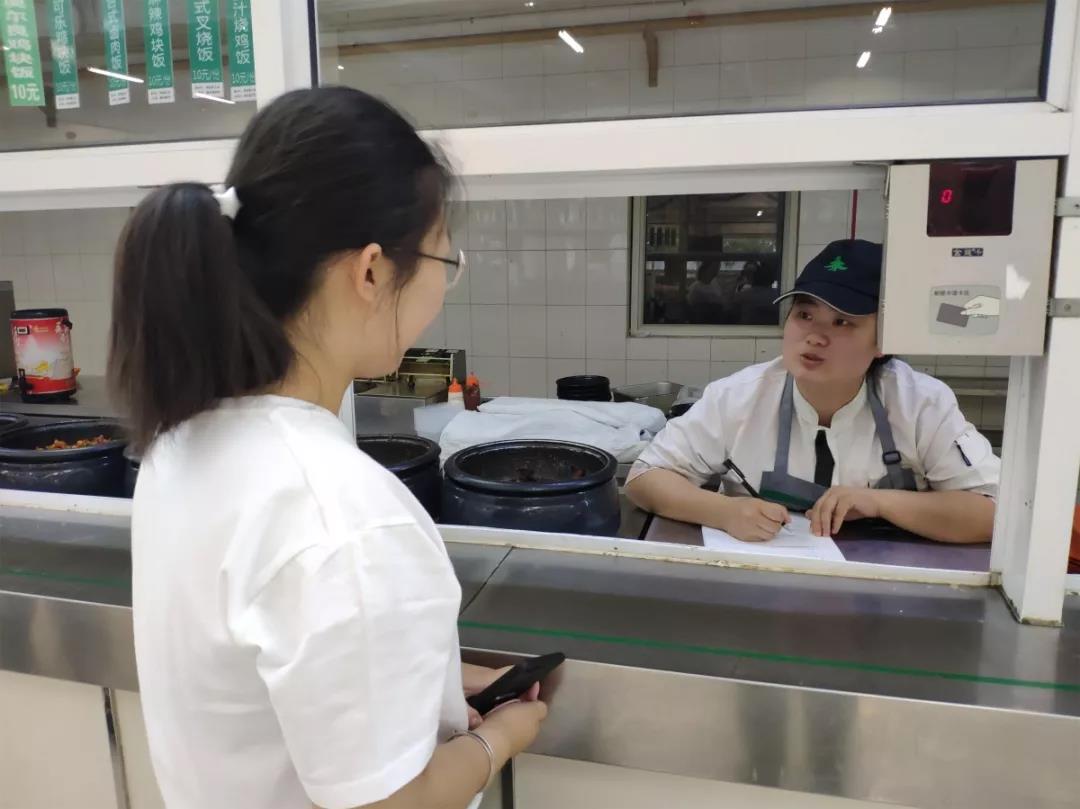 会议结束后,队员们来到校园操场门口、超市和餐厅门口等人流密集的地方面向在校员工发放调查问卷,一边填写,一边为他们讲解校园直供平台的运行模式。随后成员们对餐厅的职工发放了调查问卷,并对关于直供平台的信息做了一系列的说明与介绍。填写问卷的过程中,职工们联系实际提出了自己的看法与建议,并对我们后续工作的开展表示了积极的态度。