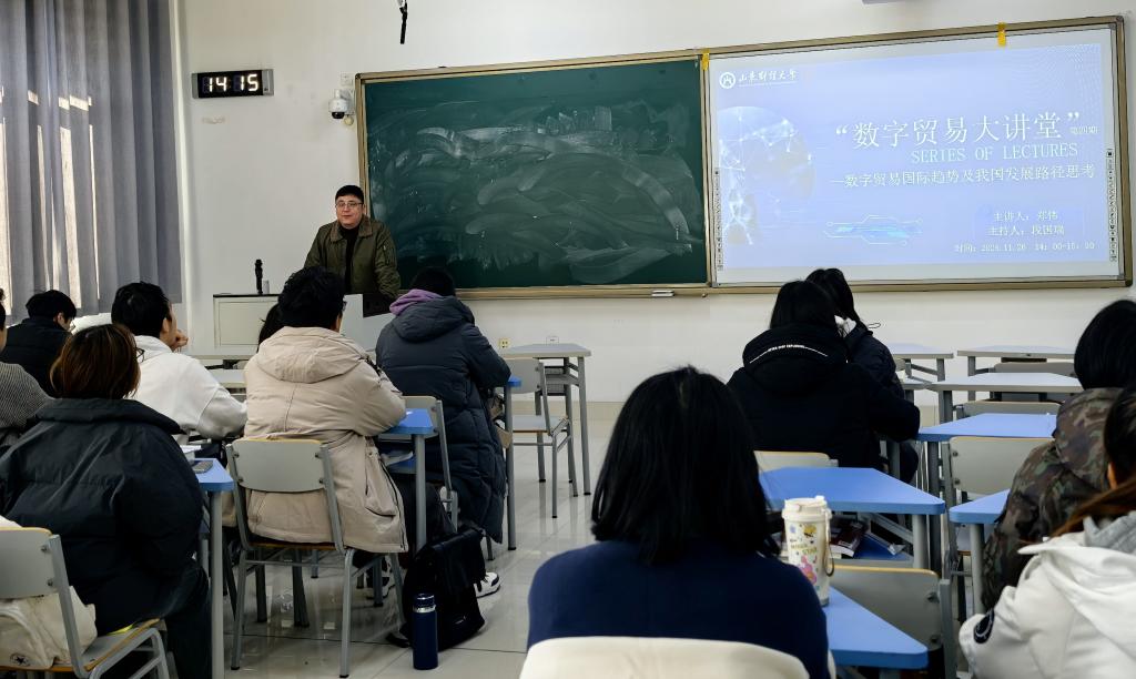 11月26日下午,3044am永利集团3044noc“数字贸易大讲堂”第四期成功举办。来自商务部中国服务外包研究中心的郑伟副研究员为公司2024级数字贸易创新实验班的员工做了题为“数字贸易国际趋势及我国发展路径思考”的学术报告。