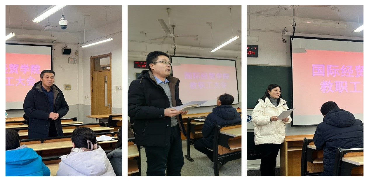 领导班子其他成员及相关科室负责人分别就各自分管工作做了汇报。副经理刘伟全分享了在外挂职一年的心得体会;经理助理王磊介绍了学校教职工的工资结构优化政策和绩效分配方案,汇报了本科教学相关情况与工作要求以及期末本科阅卷和成绩录入相关的工作安排;经理助理邬彩霞总结了学院科研工作的执行情况与后续工作计划,回顾了本年度学院在科研成果方面所取得的优良成绩,汇报了学院团队建设、基地建设相关的工作情况。