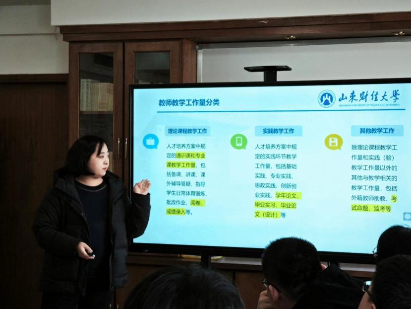 跨境电子商务系主任刘宁围绕理论与实践教学工作展开详细说明。在理论教学方面,期末考试与监考工作是重点,刘宁通过详实数据展示过往教学成果与问题,为青年教师提供宝贵经验。实践教学中,学年论文、毕业论文与毕业实习指导至关重要,她以数据为支撑,阐明实践教学在员工能力培养中的关键作用,为青年教师指明实践教学努力方向。