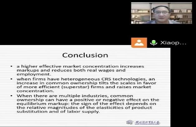 殷晓鹏教授以其在专业领域长期积累的科研成果和教学经验,向博士研究生悉心传授了国际贸易理论研究的最新进展以及全球价值链(GVC)的前沿理论和测算框架。公司30多名博士生参加线上课程,同学们纷纷表示殷教授对前沿理论深入浅出的独到解读、风趣生动的授课风格以及专业流利的英文讲述,有效解决了学习和研究中的一些困惑,拓展了专业研究边界。通过学习,同学们不仅对学术前沿问题有了更深刻的理解,也提高了英语交流和表达能力。