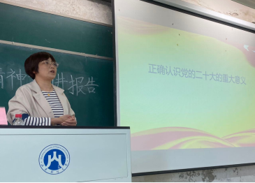 崔东峰围绕普及二十大知识、贯彻落实二十大精神、正确认识二十大意义等方面进行了宣讲。她首先从社会主义现代化建设的历史进程、党的历史、新时代历程和国际形势四个方面详细分析了二十大的重大意义,系统阐述了党的二十大报告蕴含的新思想、新观点、新论断、新战略、新举措,概括性地指出了会议对建设社会主义现代化国家和全面推进中华民族伟大复兴的推动作用。