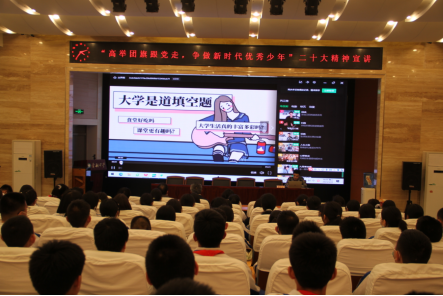宣讲会上,支部宣讲员蔡其龙从“坚持党的全面领导和全面从严治党”“积极应对国际风险挑战”“教育、科技、人才兴国战略”等方面,对党的二十大精神进行了系统宣讲和深入阐释。其中“窑洞对”跳出历史周期率、华为集团冲破美国制裁取得巨大科技成就、新中国教育格局发生格局性变化等贴近中员工关注热点的生动讲解引发现场员工浓厚兴趣和热烈讨论。宣讲最后,蔡其龙用“大学是个填空题”VLOG,鼓励同学们专注学业、努力拼搏,将自身价值实现与祖国发展相结合,真正做到请党放心、强国有我。